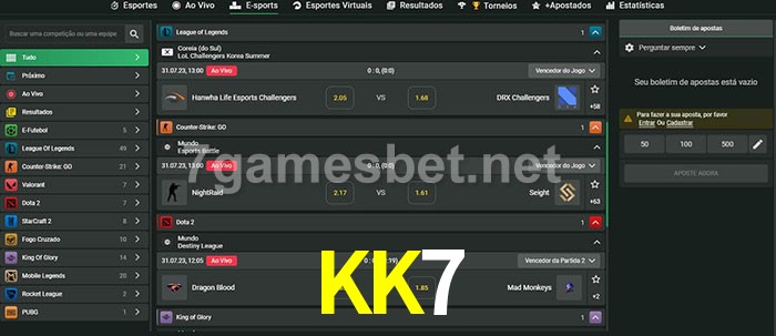 A aposta KK7 oferece aos jogadores a experiência mais conveniente de apostas em eSports!